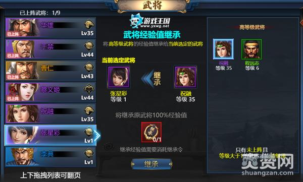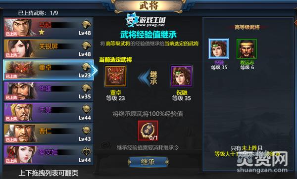 继承可以转移100%武将经验,所以十分适合在获得新武将,替换上阵武将时使用。武将继承的过程中需要消耗继承令,每次继承消耗一枚继承令。继承令可通过日常任务、街市道具商店以及限时活动等途径获得。