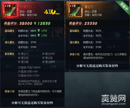 最后就是装备突破,在游戏内,还可以将橙色品质的装备突破至超强的红色品质,大幅度提升装备属性。橙装突破需要消耗道具血晶石。红装还有额外的套装效果喔!