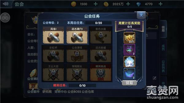 当公会等级达到2级以后,即可解锁公会任务功能,完成指定的任务即可获得奖励。并且每次完成任务以后还会累计,累计10次以后就可以开启精英任务,奖励更加的丰厚,当达到周累计次数之后,还会额外获得大量的经验和珍稀道具,甚至是神级战宠的碎片。