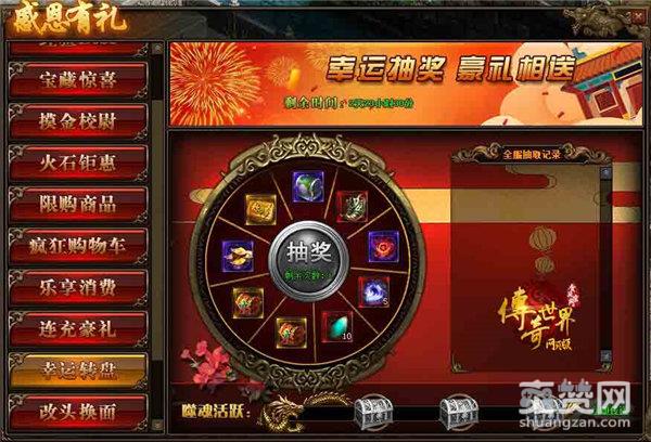 幸运转转转!看谁的运气好的时候到了!每日完成噬魂活跃达到一定噬魂值后,可领取抽奖次数,每日最多获得3次。传世君都希望你们能够转到大奖哦!