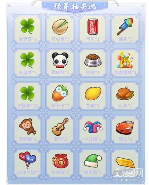 活动期间,每使用10绿芽可参与游戏抽奖!有机会获得“幸运草”,使用幸运草可兑换相应奖励!