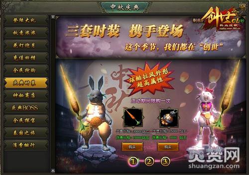 追求个性时尚的你,是不是已经厌倦了那些重合率超高的时装?那就来试试360《热血战歌创世》中秋节限定的兔兔CP时装吧!以前推出的时装大家也都知道,人性化多一点,要么英姿飒爽,要么性感诱人,这次中秋时装采用“萌兔人偶”装扮,带来更多心意!高大威猛的黑兔以及娇小可爱的白兔预示着一男一女,手里的胡萝卜以及萌兔玩偶武器也是绝对的亮点,只要穿上这套时装再配备这夸张的武器,保证你能成为人群中最靓的仔,重点是已激活的时装属性还会叠加在角色身上,让你实力尽显风采依旧!