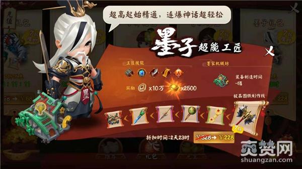 理由:不得不说,想要提高赚钱效率,缩短发展时间,鲁班是必不能少的,全能工匠就决定了你的起跑线,在别人还在存钱开工匠槽的时候,你已经愉悦的开启了神器一条龙服务,什么装备都能造,就是这么的为所欲为。每升一级加15的技能点,也让你的制造效率蹭蹭蹭往上涨,附带送的小货摊神器,出售所有装备加民心,让你随时涨价没有后顾之忧。另外附件的图纸也是性价比极高的,中期价格极高的白羽金靴,后期带有探索资源增加天赋的共工争帝盾,首充选择30元的档,元宝多一些,开启第三制作槽,都是十分不错的选择。