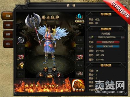 同时左侧为英雄主要养成系统,包含经脉系统、神翼系统、转生系统等。下方为英雄符文系统与主角的符文为共用系统。英雄有强攻模式(属性偏输出)和抗怪模式(属性偏防御)两个属性模式可以进行切换。