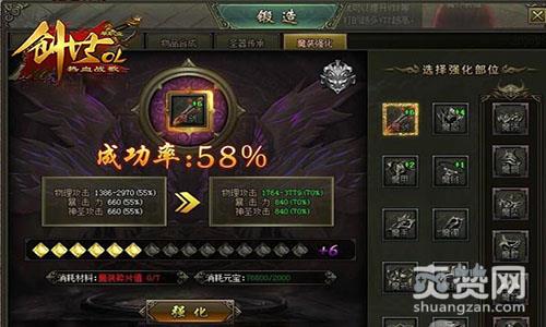 萝卜玩《创世》游戏通过消耗魔装精华、元宝对魔装装备槽位进行强化,强化后可增加对应槽位当前穿戴魔装基础属性的百分比属性加成。强化等级+6以上时,强化有概率失败,失败后随机降低强化等级1-3级,强化时使用魔装晶髓,可保证强化失败后不降低强化等级。同时每个魔装槽位的强化上限为15级,当全身强化+5、+9、+12、+15时可额外获得强化套装属性加成。萝卜玩《创世》游戏魔装分解可获得魔装碎片,使用魔装碎片可增加魔装精华,用于魔装部位强化。