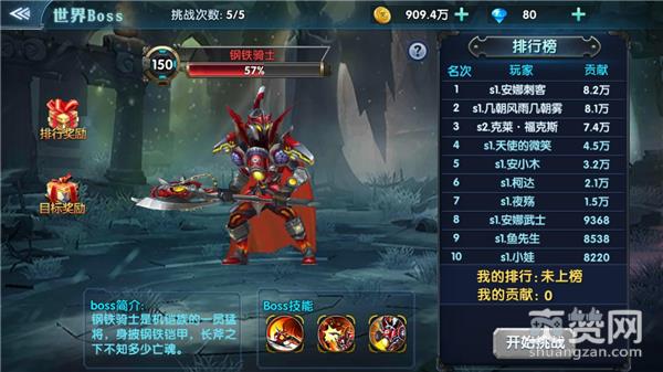 世界BOSS挑战玩法并不是单人作战,会在进入战斗时随机匹配队友,最大人数为10人,每场战斗的时限为5分钟并且不能携带战斗型宠物。战斗的奖励分配模式分为两种,一种是排行奖励,按照贡献量排名,贡献量越高排名越靠前,获得的奖励也越丰厚,另一种是目标奖励,获得对应的贡献指标,就会发放相应的物品奖励。
