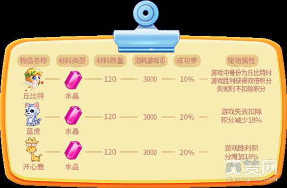 备注:通过“魔法石碎片”合成的“宠物”将在每次限时活动中,展示其在合成时所需碎片、游戏币数量及成功率,敬请关注!