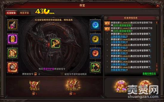 43u《暗黑大天使》寻宝包含“红龙秘宝”和“地宫寻宝”两种类型,分别可以获得卓越装备和珍惜符文。消耗秘宝令即可完成寻宝,抽取珍稀道具。当玩家拥有的秘宝令不足时,可以消耗钻石购买精美限时称号,将会获得秘宝令奖励。