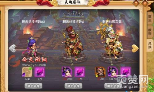 2. 献祭会将武将在招募、升星、觉醒的过程中消耗的武将碎片按照比例转化为更高潜力的武将碎片,并且返还培养武将消耗的大部分资源,献祭神将会随机获得神将碎片。3. 兑换为限定开放活动,活动开启周期内可以消耗武将碎片和道具兑换指定武将