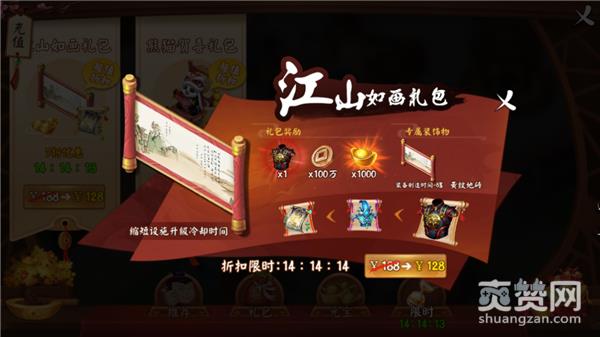 本次限时放送的两款礼包各具特色,性价比满满,一边是如梦如诗般的江山如画礼包,内含颜值赛高功能强大的千里江山墙饰,拥有制造装备时间减少5%的超高加成,附送的珍稀图纸盈利点也是全额拉满,并且还具有增加攻击与速度的增益天赋,让人心动不已。