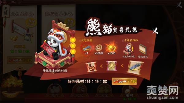 另一边则是被誉为新一代造钱机器的熊猫贺喜礼包,附送的装饰可爱圆润且契合佳节氛围,无形之中增加了玩家的气运,其中的珍稀图纸更是囊括了前中后期所有过渡的神器,从此一夜暴富不再是梦想。这两款礼包,在假期不仅限时放送还有打折优惠,对此,小编只想说,我全都要!