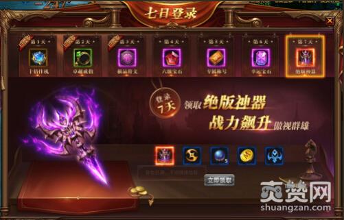 第3天登录:免费领取极品符文,经验符文,初级坐骑丹X5,10万金币,刀锋意志称号