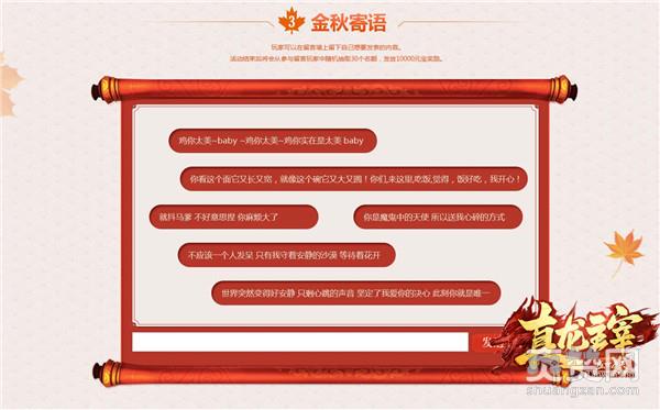 这个就有趣了!就是一个让你们畅所欲言的地方呢~说出你想说的话吧,只要在留言墙上留下自己想要发表的内容,活动结束后我们将会抽取30个名额,发放10000的元宝奖励哦!没错,10000的元宝,只要你动动小指头就有机会拿到啦!不说了,小编也去留言啦~