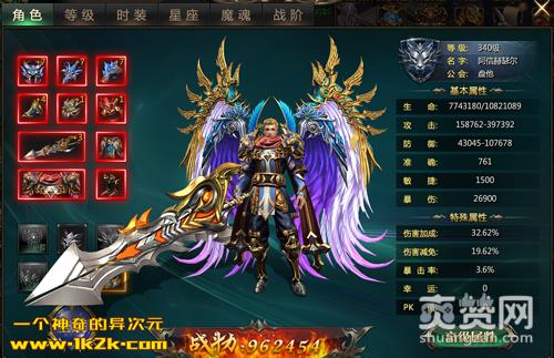 1k2k《浴血战魂》角色界面分为三个系统,分别是角色人物,角色等级以及星座的显示。