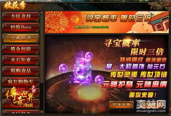 你们想要知道咱们春哥送的传世手镯在哪里寻得的吗?就是在宝藏惊喜呢!那这次的机会又来了,在活动期间,玩家寻宝概率翻倍,极高几率获得星·太初首饰,仙元石、碧落星空,传世灵器·项链碎片、传世灵器·手镯碎片,元神护身特戒以及元神麻痹特戒。赶紧寻得一件稀有道具,送给你身边最爱的人吧!