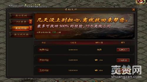 第一是下线,然后在再次登录的时候便能领取离线经验,这种玩法对于一些VIP玩家更有优势,他们可以获得多倍的离线经验的奖励,另外如果玩家朋友方便开电脑的话,那么可以找一个比较好的地图挂机也是一个非常不错的选择,毕竟由于游戏的设置我们在击杀野外怪物的时候除了能获取到大量的经验之外,还可以获得血符等道具,这点对于游戏的整体提升帮助非常大,而且如果玩家朋友的背包中有一些多倍经验卷轴也可以在这个时候使用挂机,是非常不错的选择。