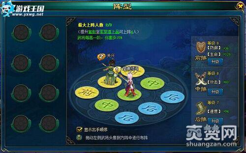 回合制RPG游戏,在战斗前先将己方的出阵队员放置在阵容的相应位置,阵容为3*3共9个格子,前排位置有防御加成,中排位置有攻击加成,后排则有速度加成。玩家可以随意将队员放置在阵容中的随意位置,注意,放置位置是影响出手顺序的!游戏中有怒气值的设定,人物及名将的技能释放是需要消耗怒气值的;当角色或名将的怒气条满时,脚下就会出现一个黄色的光团,后续攻击就会被替换成大招!不同职业,不同名将,拥有不同的大招,大招效果差别甚大,在知道敌方的站位后,可针对性的出战克制阵容,如此战斗则事半功倍!