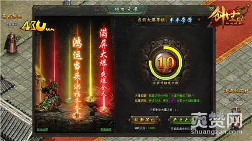 鸿运当头,洪福齐天;满屏大爆,爽爆全天!超燃啊有木有?43u《热血战歌之创世》开启炫酷新玩法,当玩家们在达到一定等级后就能体验超爽大爆系统,福利多多,速来挑战吧!