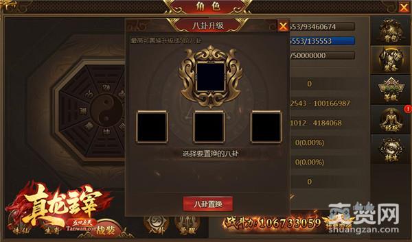 八卦装备界面新增【升级】按钮,消耗3个同阶八卦装备看升级置换成更高级的八卦装备,最高可升阶成5阶八卦!