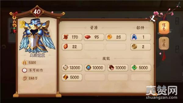最终阶段的图纸为天羽霓裳,售价为几百万,即使在也算是不错的价格了。另外,这件装备的价值不在于售价,而是装备专属天赋技能天下归心,这项技能激活后后增加全队魏将一定数值的基础属性,粗略计算,基本三围能各加个20+属性,能使整个的队伍实力,都上升一个档次。