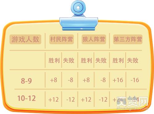 2) 若该玩家所在阵营游戏失败,则该玩家将扣除相应积分。