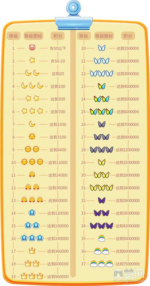 获得足够游戏积分后,即可增长游戏等级,并展示不同图标,详情如下: