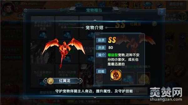 那到底这一只双SS战宠有多大的魔力能让玩家不惜爆肝苦熬来获得呢?首先,守护类在战宠中就十分稀少,并且红翼龙还属于独特的增益型守护战宠,不仅能大大提高自身属性,技能火龙守护能使契约者获得10%的经验加成,并且无任何条件限制,对于前期练级可谓是一大利器。