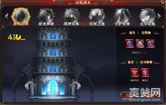 点击界面右上角的“试炼副本”即可打开副本界面,点击“永恒之塔”,即可看到永恒之塔的相关信息。