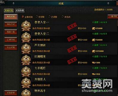 923yx《七杀》中的成就系统记录着大家的各种成长,当成就积累到一定程度就可领取相对应的奖励。通过点击快捷键“X”,大家可以打开成就界面,查看可领取奖励和尚未达成的成就。达到各种成就条件后,即可领取成就积分和绑定金币。