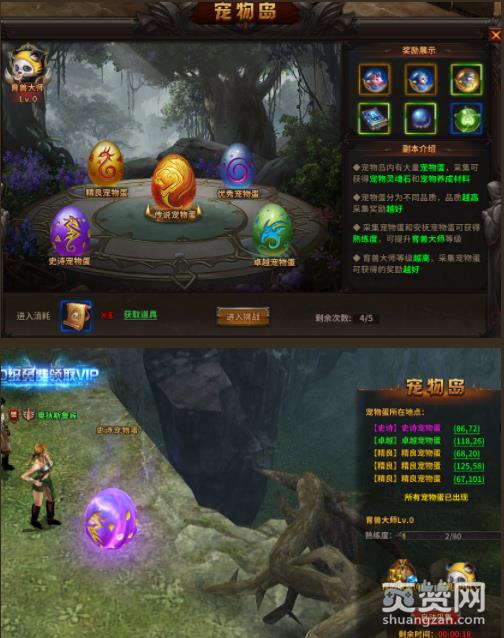 2) 进入副本后,每隔一段时间会随机刷出不同品质的宠物蛋,分布在宠物岛的不同地点;