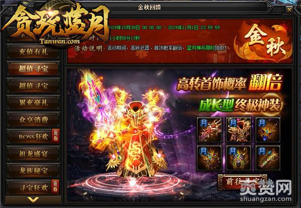 活动期间,蓝月神兵和高转符文抽取概率翻倍!谁会有这么好的运气,夺得天王终极神装呢,惊喜刺激的寻宝活动为你揭晓!