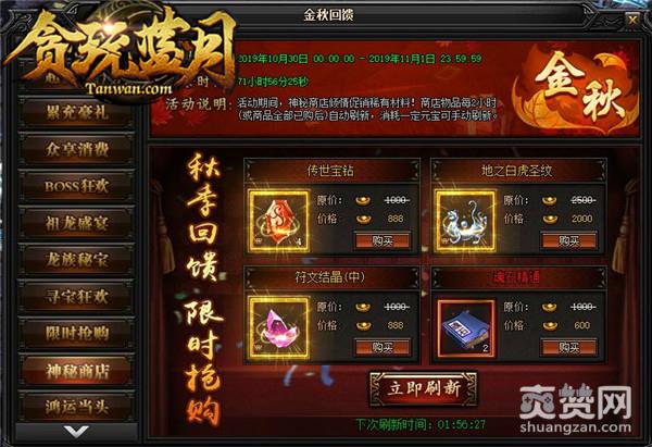 双十一快到了,没想到天王也逃不过买买买的魔咒!《贪玩蓝月》神秘商店疯抢进行中,限时3天,倾情促销稀有材料!每2小时还会自动刷新商店,快去看看有没有你想要的惊喜吧!