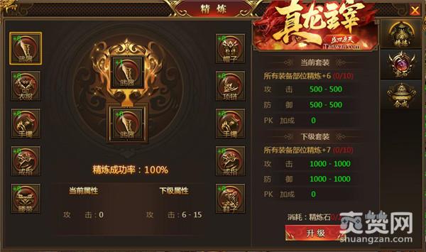 1. 消耗精炼石来提升装备部位的等级