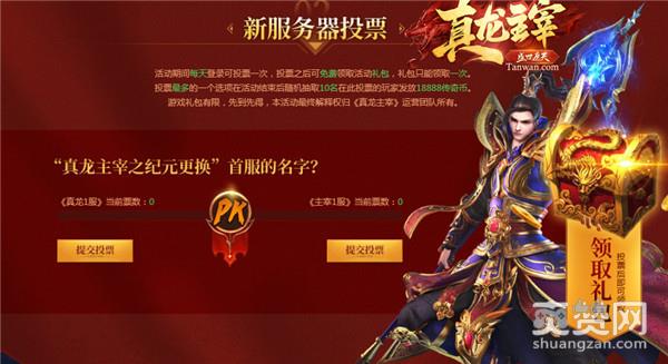 新服务器名字等你来选!《真龙1服》VS《主宰1服》,两大名字哪个更能得到你的喜欢呢?投上你宝贵的一票吧,投票之后可免费领取活动礼包,投票最多的一个选项在活动结束后,随机抽取10名在此投票的玩家发放18888传奇币哦!每天还可转动转盘,凭手气领大奖!