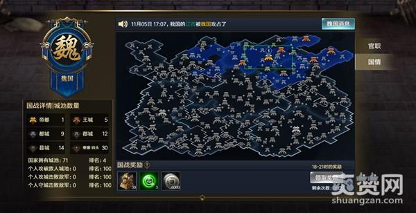 (1)加入国家后每日可进入国战完成任务和攻城掠地
