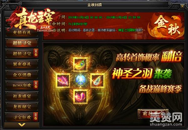 《贪玩蓝月》超值开启,活动期间高转武器、首饰概率翻倍!更有神圣之羽、圣纹精魄限时掉落,备战巅峰赛季必不可少!寻宝次数达到指定次数可转动秘宝,极品道具准备好了
