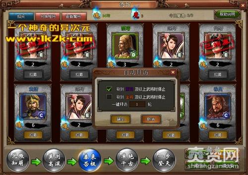 小R玩家建议最低充VIP到3级,获取关羽和诸葛亮,在名将争霸赛中看一下全服单将和双将模式中前3名就可知诸葛亮的威力了。条件允许且愿走R玩家路线的中小R玩家建议最好VIP升到5级,其他好处不说,仅就刷将和寻宝来说,这很有必要,不然刷将和寻宝就是一件心烦的事。