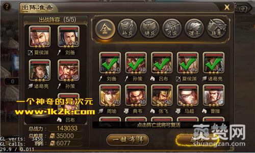 1k2k《铁骑三国》28级开放无双争霸系统,通过演武场可进入无双争霸界面。首次进入无双争霸时需先设置防守阵容队伍。在无双争霸中可挑战本服其他玩家以获得丰厚奖励,系统每次会列出排名在自己之前的前4名玩家,点击更换对手按钮将重新抽取4名玩家。长按玩家头像,可查看玩家的防守阵容。点击头像下方的“点击挑战”按钮,将弹出挑战布阵界面。挑战胜利后,将获得大量铜钱奖励。