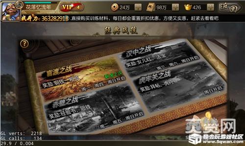 20级开放经典战役,经典战役中共有4场战役,分别为:官渡之战、汉中之战、赤壁之战、虎牢关之战,每场战役均只能出战指定国家的武将。挑战成功后将获得丰厚资源奖励。