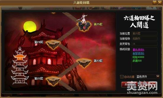 要说六道轮回塔这里面的独产宝贝就足以吸引玩家,玩家每天可以进入塔内铲除妖魔。若是顺利打败一层妖魔,就有机会获得灵件。每一关有25层通道,玩家需要打通所有通道才能顺利进入下一层。在塔中,你只要顺利抢夺灵件,就可以让你的武器增加一层属性,那么与妖魔夺宝之战就需要你的实力进行证明了!