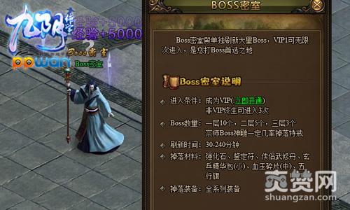 由此不难得出在ppwan《九阴绝学》中进入BOSS密室的唯一条件就是成为VIP(虽然非VIP玩家也可以进入,但是仅限3次)。BOSS密室在ppwan《九阴绝学》中是个特殊的存在,会单独刷新大量的BOSS,玩家无限次进入击杀,是玩家们打BOSS的首选之地,同时也会掉落大量的珍贵游戏道具以及装备!