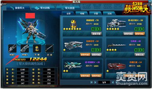 枪战的世界,你必须有足够的武器储备,才能杀出一片血路。在《4399核金弹头》中,军火库中你所获得的武器,便是你的武器储备,打开游戏主界面下面点击“军火库”图标可打开军火库界面,当有新枪达到购买条件时,右下角也会弹出相应的提示,点击可以快速进入军火库。
