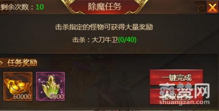 2. 玩家可以嫌杀怪费时间可以选择一键完成,每天可以完成10次任务。