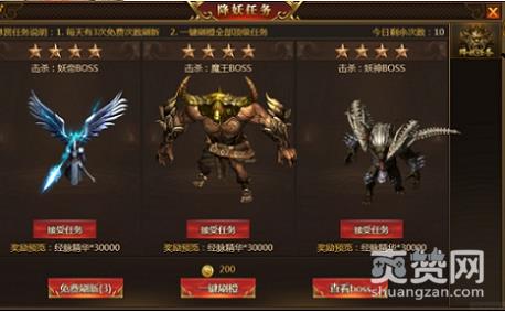 1. 降妖任务是击杀BOSS的任务,每天可以完成10次。