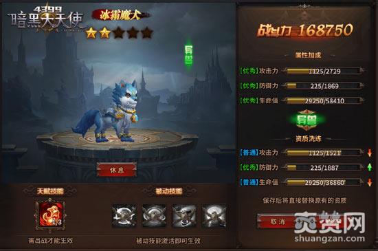 异兽:需攻防血培养资质评价均达到优秀或以上,属性加成攻击力+100、防御力+20、生命值+2600。
