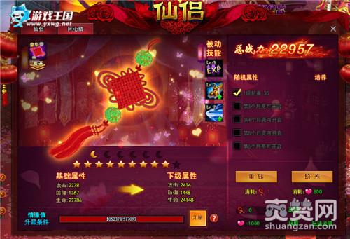 同心结可以给玩家增加属性,当夫妻双方的情缘值越高,同心结的星级属性就会越强。