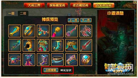 当包裹没有钥匙的时候,可以使用元宝立即搜索,每种藏宝阁的所需要花费的元宝价格也不相同。