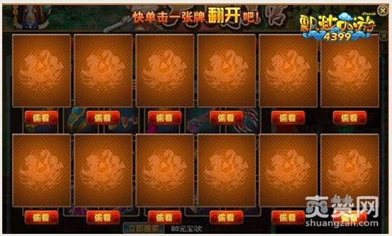 使用立即搜索之后,会出现翻牌界面,每张牌都提供偷看功能,偷看需要消耗元宝,并且会按偷看的次数依次递增。