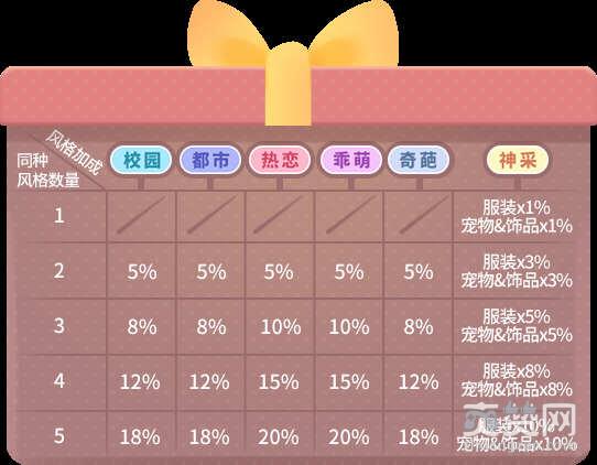 3. “校园”、“都市”和“热恋”风格将会对“服装”的颜值进行额外加成;