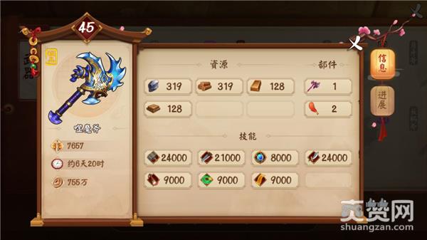 要提醒一下的是,如果佩戴月牙斧,想达到零休息时间 必须附加其它减探索效果,例如穿戴时装或者布置坐忘长生龟。还有就是切不可忘记,将驿站等级提高到40级,因为这样才能拥有25%减探索时间buff,实现真正的双无休。